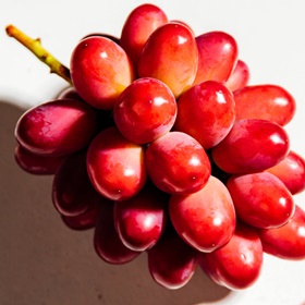 山梨県で開発された鮮やかな紅色が特徴のブドウベニバラードと、種が無く皮が薄いシャインマスカットをかけ合わせて作った神紅。 まさに美味しいところ取りをした新品種です。