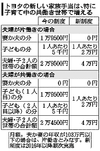 広がる年収差 … 役員報酬は高額化、従業員の年収増は慎重 報酬を 1 億円以上もらう上場企業の役員は 400 人を超え、高額報酬を受けとる役員とその企業の従業員との年収の差は年々広がる。 役員報酬は好業績を反映しやすいが、企業はコスト増につながる従業員の年収アップには慎重なためだ。 役員の巨額報酬への批判もある米国並みに差が開く日本企業も、出てきそうだ。 今年 3 月期の報酬が初めて 10 億円台にのった日産自動車のカルロス・ゴーン社長は、6 月 23 日の株主総会で「役員報酬に相当な投資をしないと、競争力を保つのに必要な人材の採用や確保ができない」と理解を求めた。 従業員の平均年収の約 20 倍にあたる 2 億円超の報酬を得た大手金融会社トップは「社員の給料も業績に連動している。 役員の貢献に報いる仕組みも、企業の収益力を高めるために必要だ。」と話す。 (多田敏男、編集委員・堀篭俊材、ニューヨーク = 畑中徹、asahi = 7-26-15) リケジョ育成で官民連携 夏休みに職場体験実施 内閣府と経団連は 17 日、「リケジョ」と呼ばれる理工系分野で活躍する女性の増加に向け、中高生や大学生らに理系の専攻や仕事の魅力を知ってもらうイベントを、夏休み中の 7 - 8 月に各地で実施すると発表した。 労働力人口の減少を見据え、政府はリケジョの育成を重要課題に位置付けており、官民連携で進学から就職まで一貫して、女性の理工系選択を支援したい考えだ。 「理工チャレンジ」と銘打った企業の職場見学会は経団連加盟の建設会社や鉄鋼メーカーなど 31 社で実施。 トンネルや防潮堤などの大規模工事の現場見学や、研究開発拠点での研究体験などを予定している。 (福井新聞 = 7-17-15) 「トヨタ社員の夫、過労とパワハラで自殺」 国を提訴 トヨタ自動車の社員だった男性(当時 40)が自殺したのは過労とパワハラによるうつ病が原因だったとして、妻 (44) = 愛知県豊田市 = が 10 日、国を相手取り、労災を認めなかった労働基準監督署の処分取り消しを求める訴えを名古屋地裁に起こした。 訴状によると、男性は 2008 年 4 月からトヨタ三好工場(同県みよし市)で自動車部品の生産ラインを造っていたが、リーマン・ショックの影響による人員削減に伴い、09 年 7 月以降は「残業ゼロ」の方針で業務が過密化。 上司から指導の適正な範囲を超えたパワハラがあったという。 男性は同年秋から妻に「上司から罵声を浴びせられる。 経験したことのないひどい叱られ方をされ、けちょんけちょんに言われる。」と話し、12 月にうつ病と診断され、10 年 1 月に自殺した。 妻は遺族補償給付などを求め豊田労働基準監督署に労災認定を申請。 「業務による心身の負荷が有力な原因とは言えない」として 12 年 10 月に不支給処分となった。 労働保険審査会などに再審査を求めたが、棄却されたという。 夫の死後は看護師として働き、中学 2 年の長女 (14) と 2 人暮らし。 提訴後の会見で「将来、子どもはなぜ父が亡くなったのかと思うだろう。 子どものためにも夫が一生懸命働いたことを認めてもらいたい。」と訴えた。 弁護人は「労基署の調査は不十分で事実が明らかになっていない」と話した。 豊田労基署を所管する愛知労働局は「訴状が届いていないので、コメントは差し控える」、トヨタ広報は「訴訟の詳細を把握する立場にないので、コメントできない」としている。 (asahi = 7-10-15) 深夜残業 → 翌日必ず遅出 勤務間休息ルール始まってます 社員さん、今日の仕事が深夜に及んだら、明日はゆっくり出勤しましょう - -。 前の終業から次の始業までの間に一定の休息を取らせる「勤務間インターバル」の取り組みが、大企業で増え始めた。 極端な働きすぎの防止策だが、多くの企業に広がるには時間がかかりそうだ。 通信大手 KDDI は 7 月から、「8 時間以上の休息確保」ルールを本格的に始めた。 管理職を除く社員約 1 万人が対象。 午前 1 時以降の勤務を原則禁止し、始業時刻の午前 9 時までに 8 時間以上の休息がとれるようにする。 もし 1 時以降も働いたら、次の出勤がその分ずれる。 たとえば午前2時退社なら、翌朝の出勤は 10 時以降だ。 8 時間ギリギリの日が続かないよう、休息が 11 時間を下回った日が 1 カ月に 11 日以上あったら、本人や上司に注意を促す。 KDDI は以前から、設備担当の社員などで休息ルールを適用していた。 今春闘で労働組合の求めに応じ、対象を広げた。 白岩徹・人事部長は「『長時間労働をなくす』という会社の姿勢を強く打ち出したかった」と説明する。 勤務間インターバルについては、欧州連合 (EU) が「11 時間以上の確保」を企業に義務づけている。 日本にはこうした法規制がないため、労組が経営側と話し合って自主ルールとして確保に乗り出している。 KDDI など情報通信産業の労組がつくる情報労連は、今夏までに傘下の 21 組合でルール化した。 働きすぎへの懸念が指摘される外食業界でも、取り組む会社が出てきた。 24 時間営業のレストランを展開するジョイ